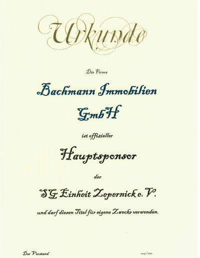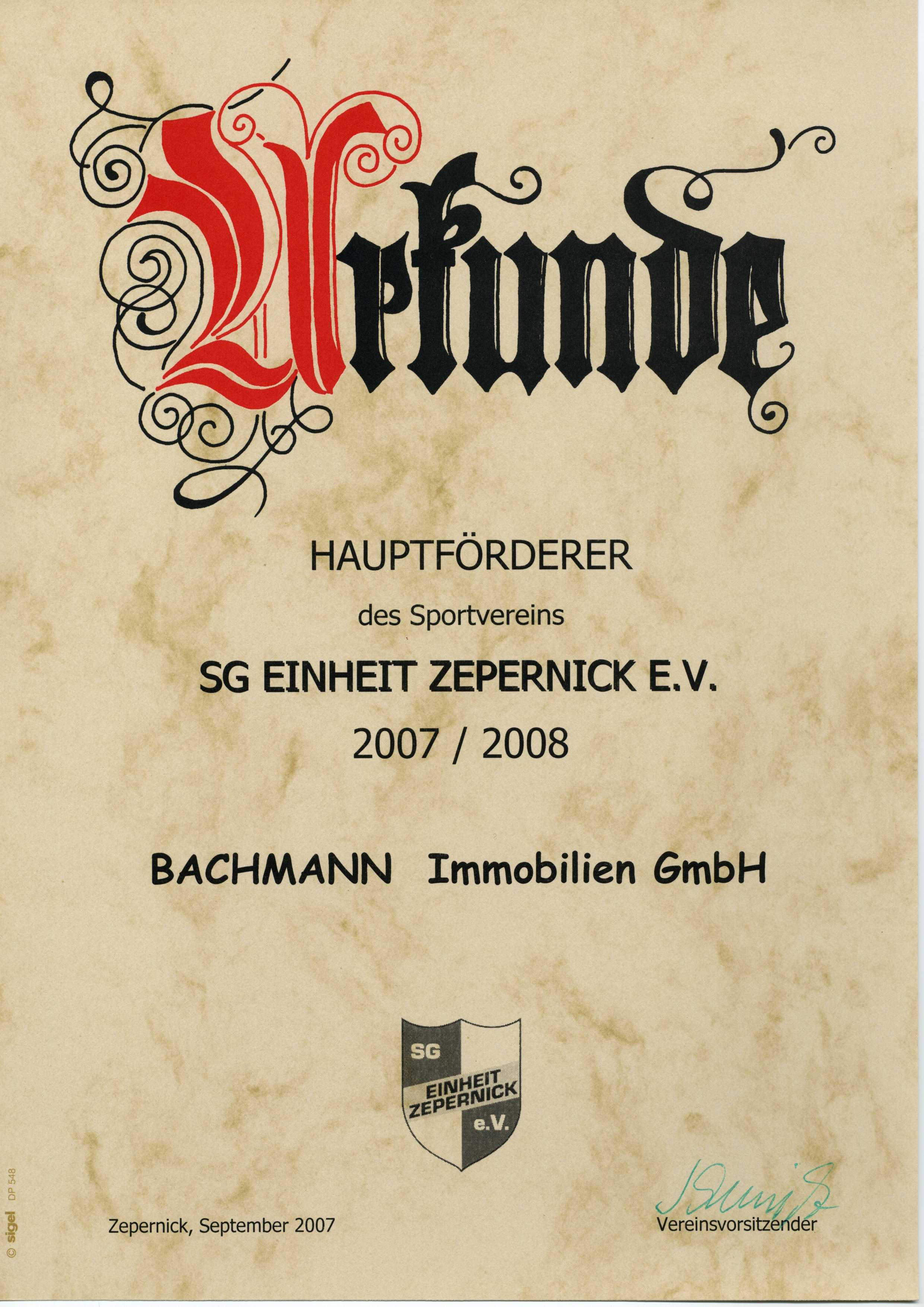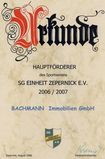 Von Einheit Zepernick als Hauptsponsor 2007 / 2008 geehrt.