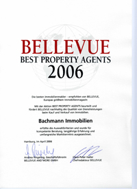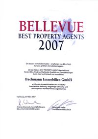 Bachmann Immobilien wurde zum 5.Mal in Folge mit dem Qualitätssiegel BELLEVUE BEST PROPERTY AGENTS & DEVELOPERS für Seriosität, Marktkenntnis, Erfahrung, Angebotsvielfalt und Service AUSGEZEICHNET.